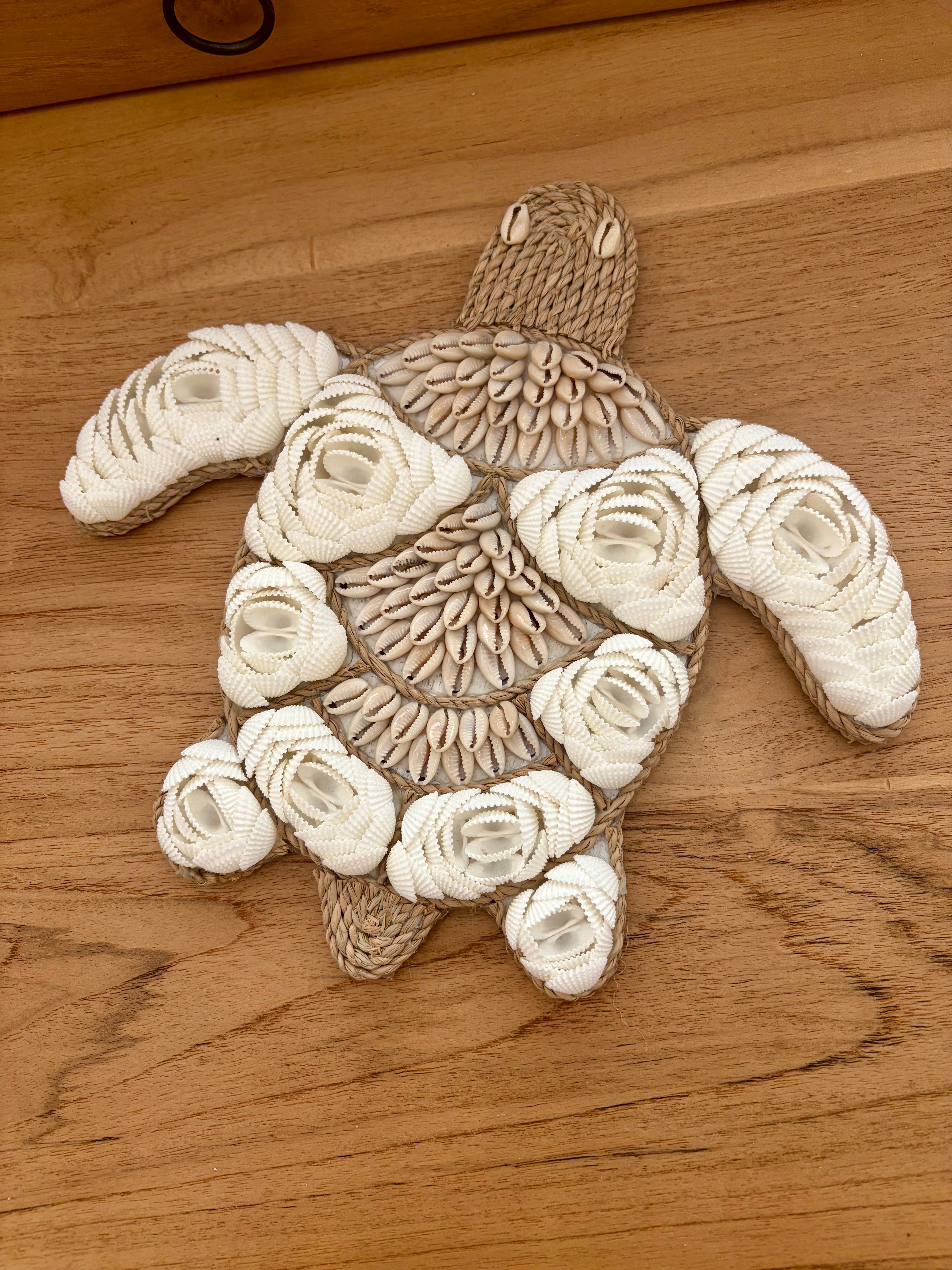 Suspendu au mur ou posé sur un meuble, cette magnifique tortue apportera une touche ethnique dans la chambre de votre enfant, ou dans une autre pièce de la maison. Cette suspension est entièrement réalisée à la main à Bali et recouverte de coquillages. Apportez une touche de vacances et de voyage à votre intérieur.